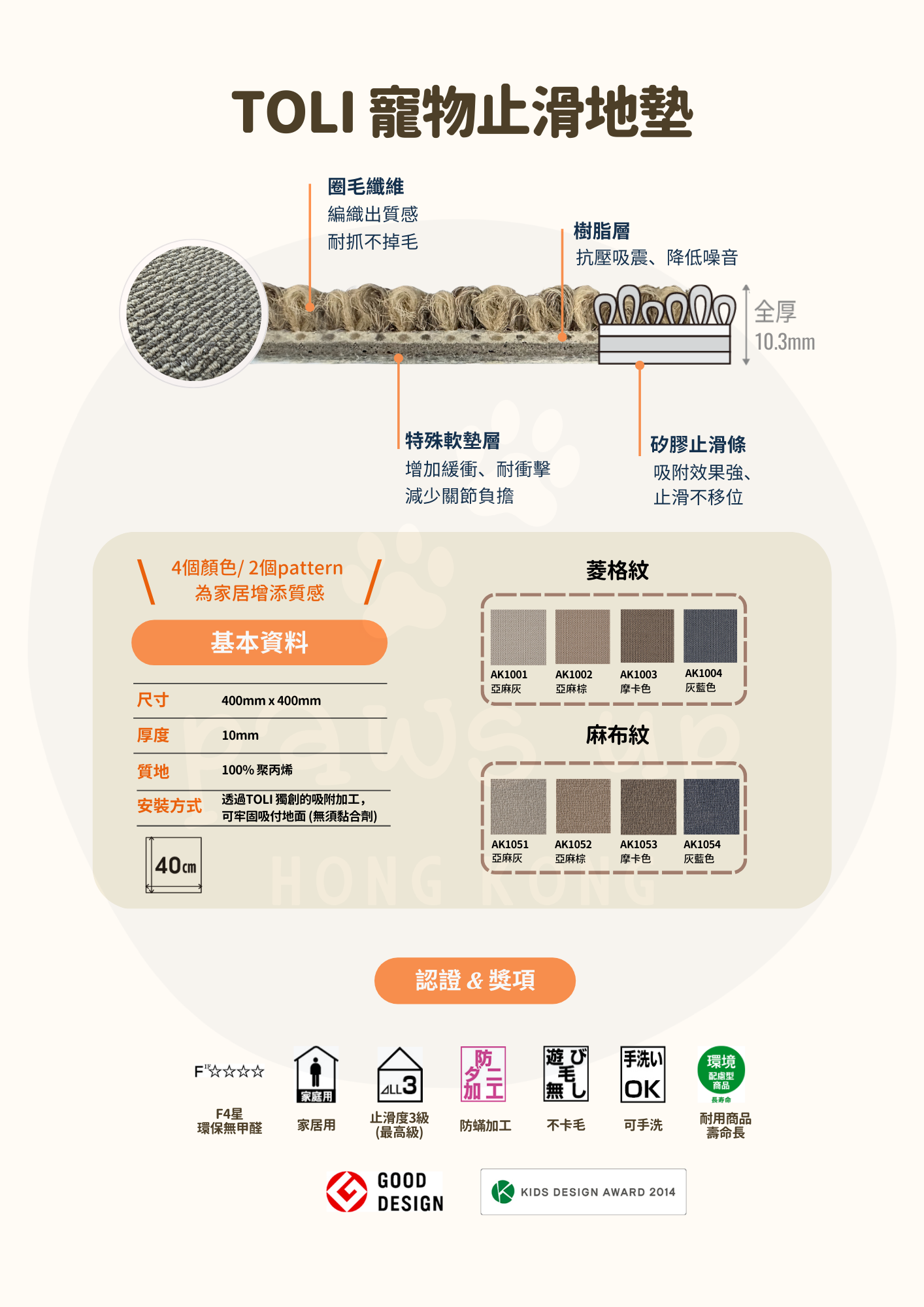 TOLI 寵物防滑地墊|AK1000 斜織止滑系列 (絕版系列)