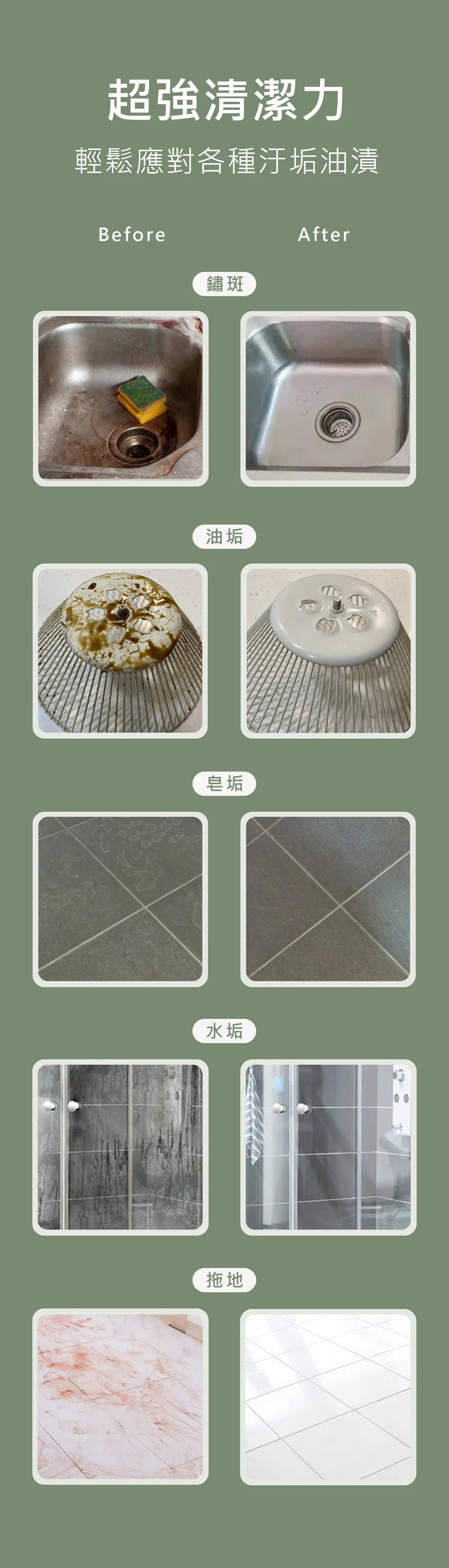 ► 全方位清潔:地板、釉面磁磚、桌面、玻璃、浴廁設備(水龍頭、洗手台、馬桶、浴缸等)、廚房設備(水槽、流理台、瓦斯爐、油煙機等)