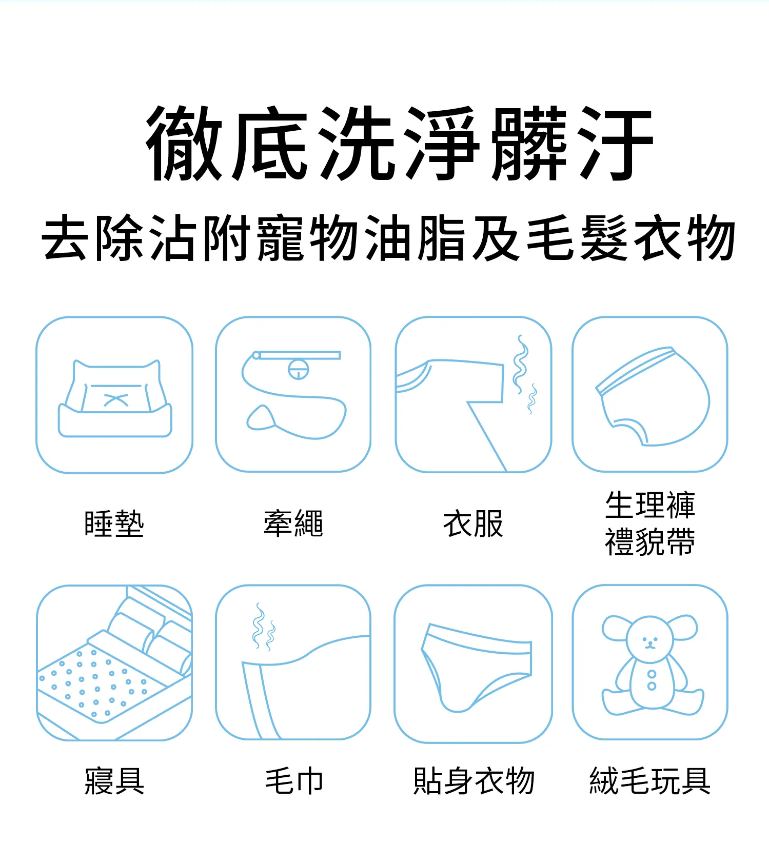 這款適合用於床單、被子等寢具,一般常被忽略的窗簾、抱枕、毛絨玩偶與衣物織品也是蟎蟲會出現的地方,建議每週固定清洗,形成天然防護罩,降低環境中的螨蟲數量
