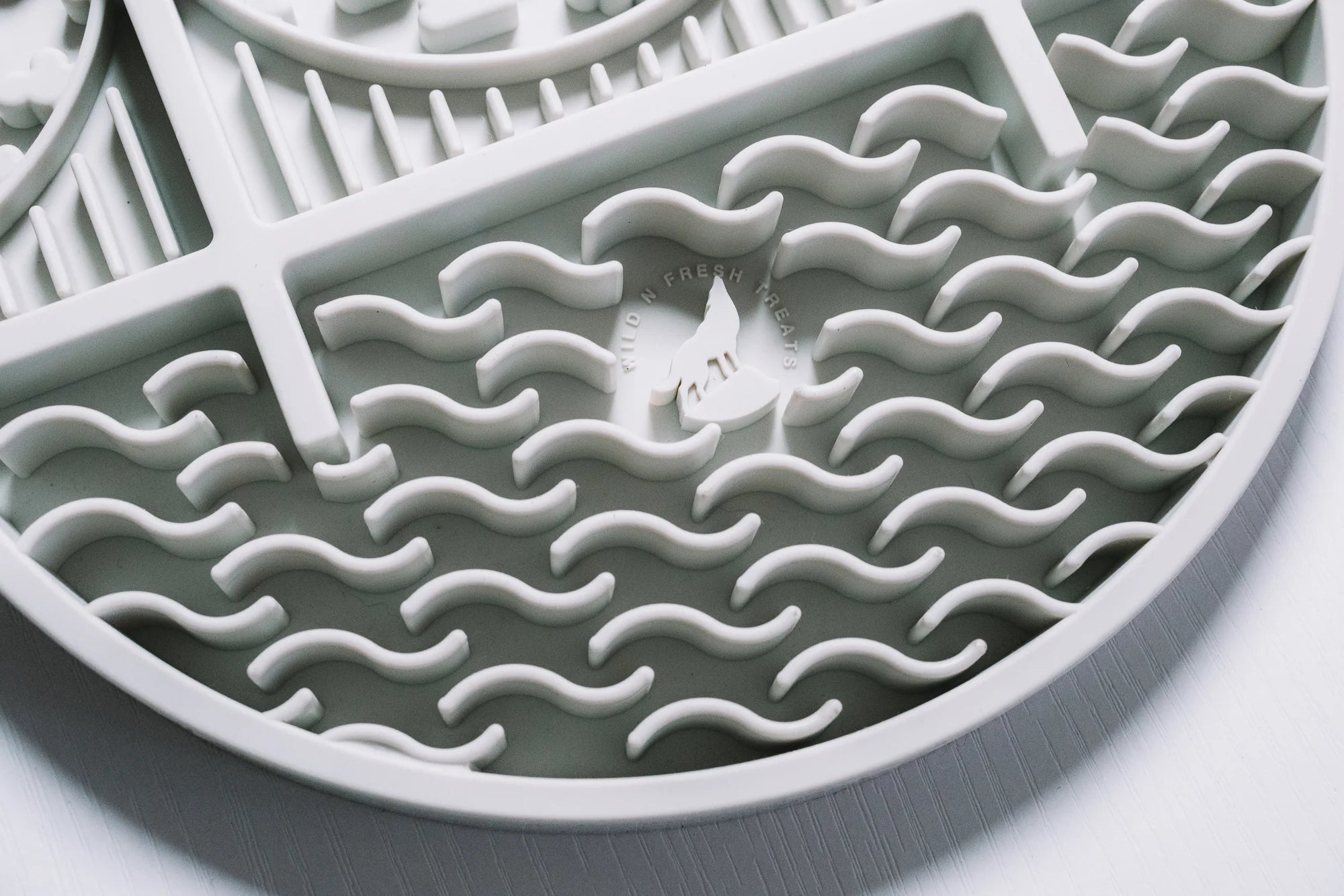 - Slows down eating: these Grub Mats serve as a natural deterrent to rapid eating, preventing gulping and reducing the risk of bloat. Slower eating supports better digestion. Furthermore, the act of licking stimulates saliva production, aiding in the breakdown of food during mealtime.