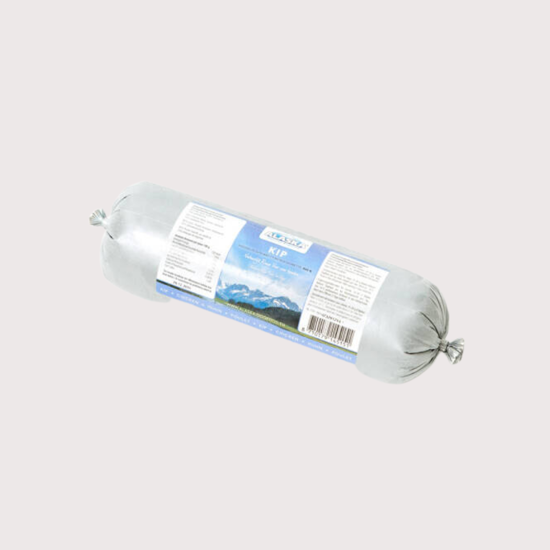 85% Chicken: meaty backs (50%), stomach (15%), liver (10%), heart (10%), 15% vegetable mix: carrot (5%), spinach (5%), cauliflower(5%).