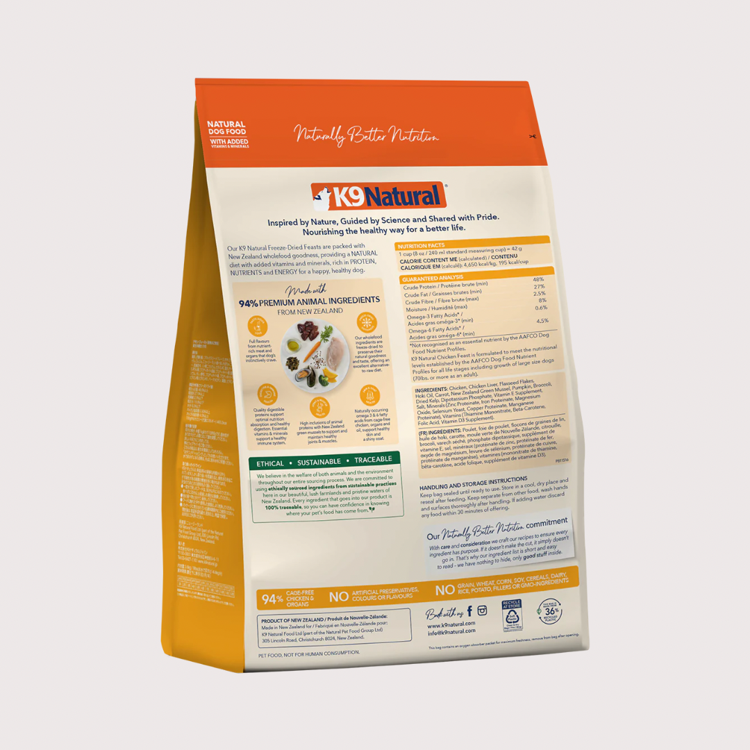 K9 Natural 凍乾生肉狗糧 - 雞肉盛宴(500g, 1.8kg, 3.6kg)