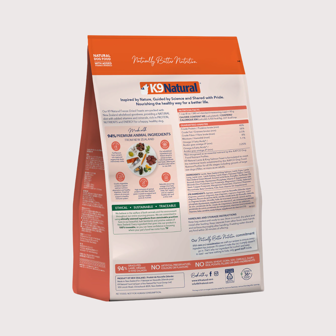 K9 Natural 凍乾生肉狗糧 - 羊肉三文魚盛宴 (500g, 1.8kg, 3.6kg)