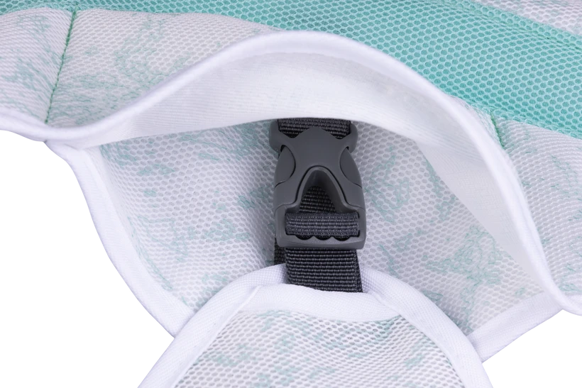 這款涼衣兩側都有卡扣,便於穿脱,同時亦在背部設計了一個方便牽繩連接胸背帶扣位的開口,讓涼衣可以直接套在胸背帶之上使用——加上一些Ruffwear的基本特徵,使涼衣成為