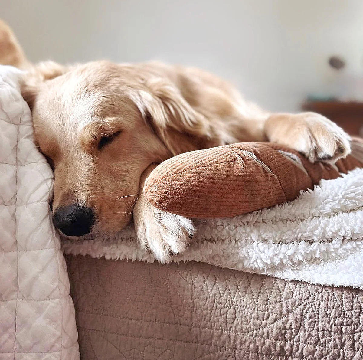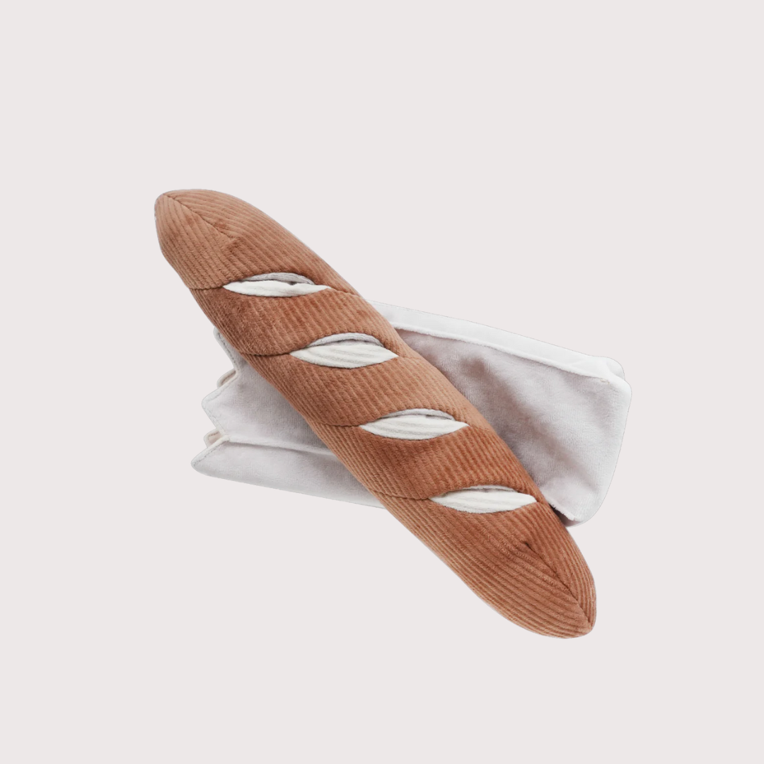 Our new BAGUETTE is an oversized enrichment play object perfect for M+ size pets. (Warning, this one will also make an exceptional headrest.) It also comes with a crinkly paper bag for you to store or hide even more treats in!