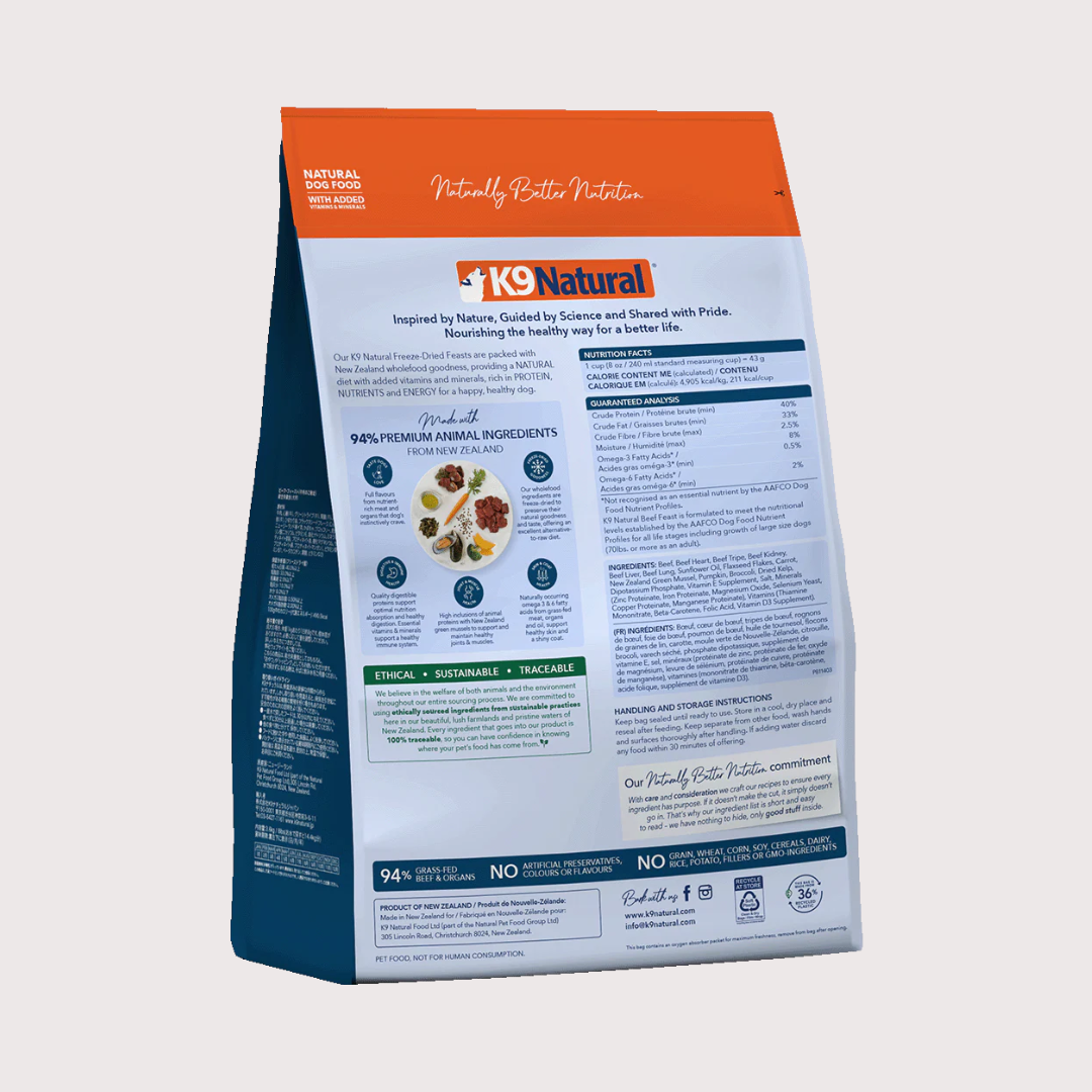 K9 Natural 凍乾生肉狗糧 - 牛肉盛宴 (500g, 1.8kg, 3.6kg)